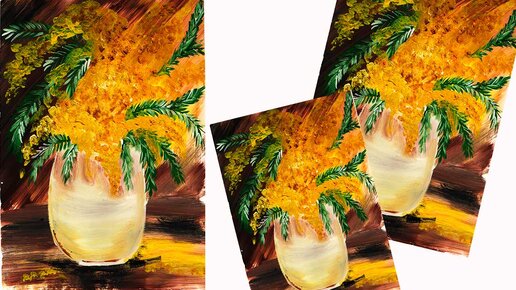 Как нарисовать мимозу. Рисуем натюрморт. Рисуем весенний натюрморт.