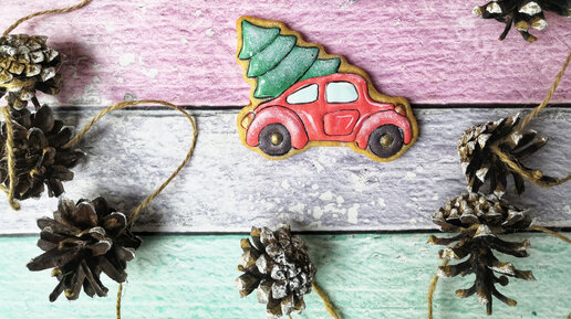 Новогодние пряники 🔹️ Имбирный пряник-машина с ёлкой.