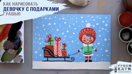 Как нарисовать новый год гуашью, как нарисовать девочку, пошаговый урок
