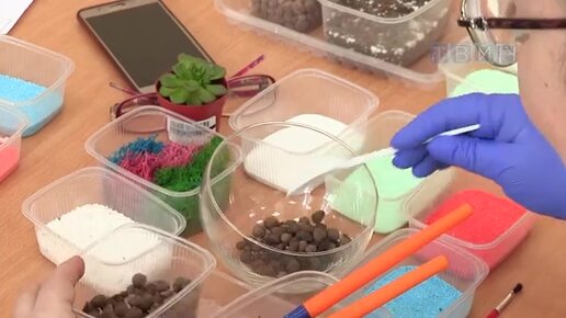 В Солнечном зале библиотеки женщины серебряного возраста приняли участие в мастер-классе по созданию флорариума.