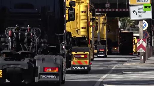 Водители грузовиков в Гамбурге, Германия, митингуют против высоких цен на бензин, которые взлетели после начала спецоперации