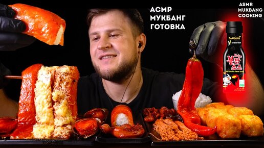 ОСТРЫЙ ЛОСОСЬ, МОРЕ ПРОДУКТЫ, СУШИ, ЭНОКИ ASMR MUKBANG, АСМР МУКБАНГ