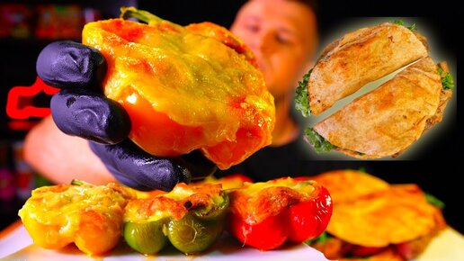 Фаршированный перец с сыром и Тако со стейком. ASMR MUKBANG, АСМР МУКБАНГ