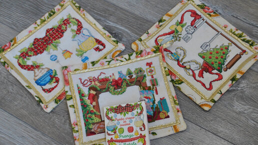 Новогодние прихватки вышивка крестом. Такие схемы вы нигде не найдете. Новогодний интерьер.