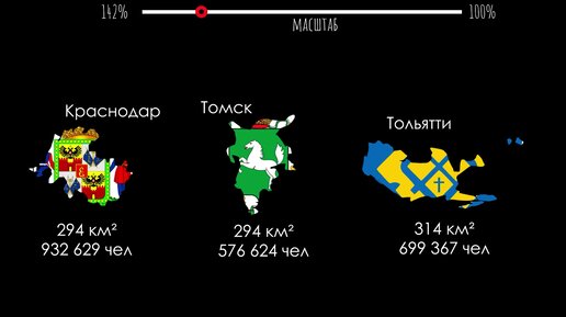 Топ самых больших городов России по занимаемой площади и населению. Инфографика.Анимация.Самые большие города России