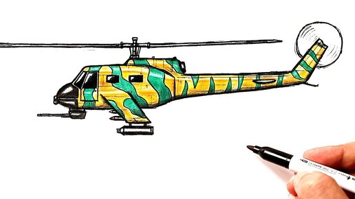 Как нарисовать Военный Вертолёт | Пустынный Тигр