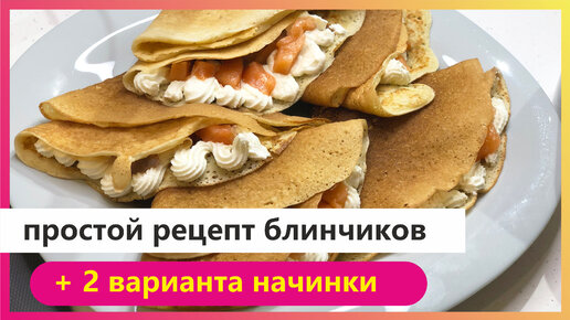 Блины на кефире - простой рецепт. Плюс два варианта начинки и подачи. Готовим с дочкой.