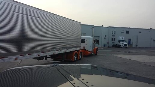 Дальнобой по США Америка. Петруха с длинной рамой сдает назад. Long frame Peterbilt 379