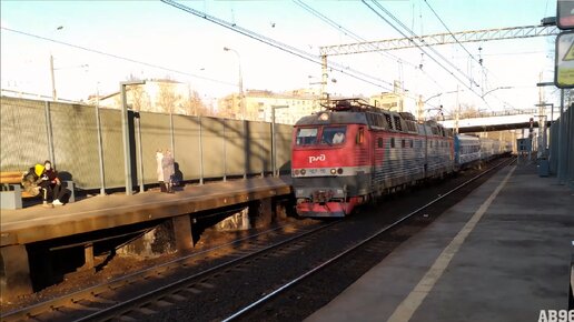 Электровоз ЧС7 с поездом на пл. Беговая