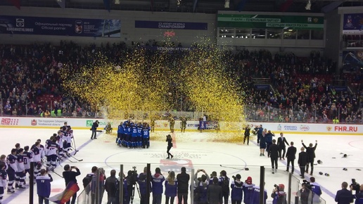 Конфетти-бластеры на вручение кубка чемпионов мира по хоккею - юниоры