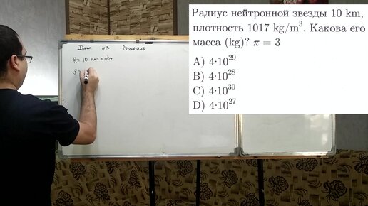 Радиус нейтронной звезды 10 км, плотность 10^17 кг/м3. Какова его масса (кг). пи=3