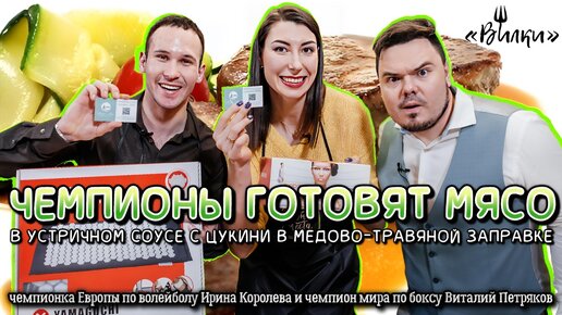 Чемпион мира по боксу Виталий Петряков и чемпион Европы по волейболу Ирина Королева в кулинарном шоу. Мясо в устричном соусе