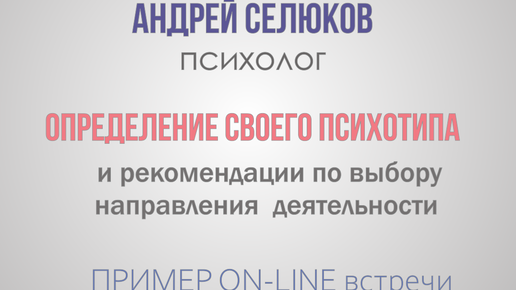Как проходит on-line тестирование на прохождение своего психотипа? Консультация с психологом Андреем Селюковым.
