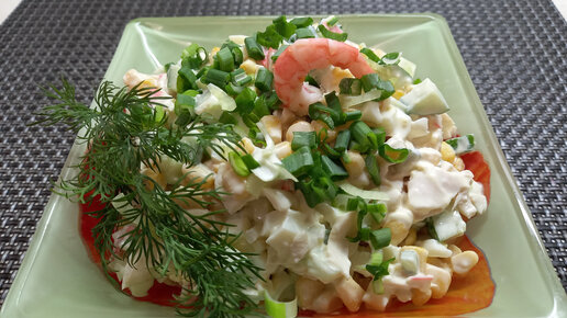 Нежный салат с крабовыми палочками, нужно только отварить яйца.