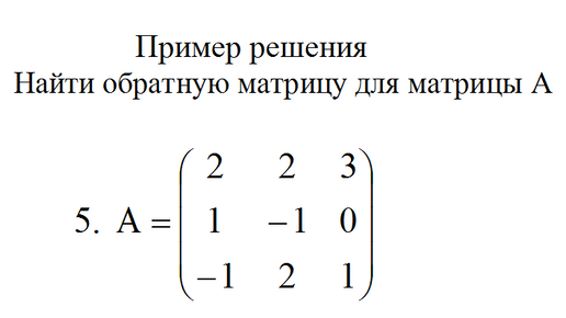 Нахождение матрицы обратную к данной A=(2 2 3; 1 −1 0; −1 2 1) пример 7 Высшая математика