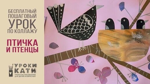 Как сделать птичку с гнездом и птенцами, клеим из бумаги, пошаговый урок по аппликации для детей
