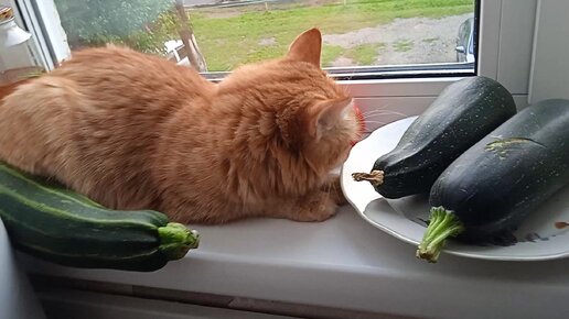 Кошечка Киара на окошке с овощами.