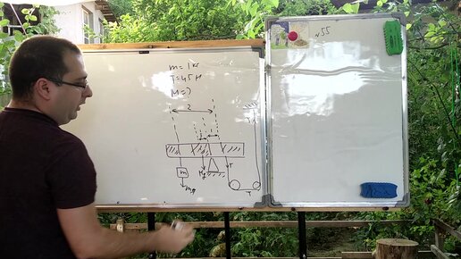 Однородный стержень массой M и тело массой m = 1 кг, как показано на рисунке, приведены в равновесие нитью и блоками.
