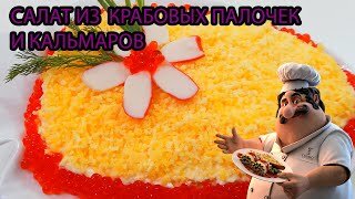 Салат из крабовых палочек и кальмаров.