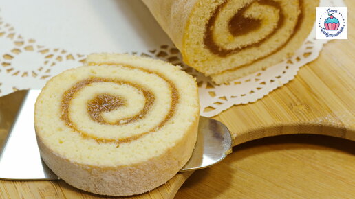 Удачный бисквитный рулет, бисквит легко сворачивается и не ломается!
