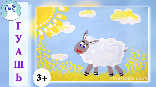 Как нарисовать овечку с ребенком. Мастер-класс по рисованию гуашью для детей. Рисуем с ребенком с 3 лет.
