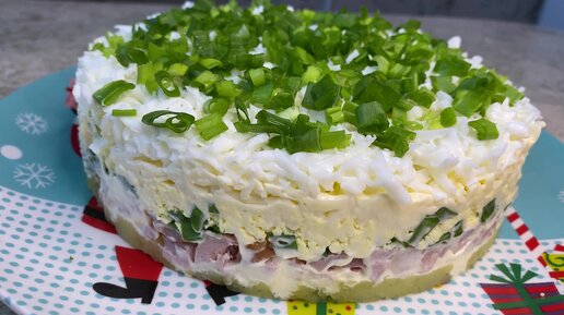 Слоёный салат с копчёной курочкой.