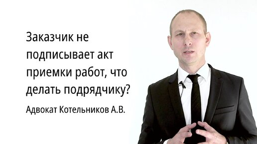 Заказчик не подписывает акт приемки и не оплачивает работу, что делать подрядчику? Краткая видеоконсультация адвоката