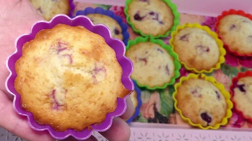 Вкуснятина к чаю всего за одну минуту! Показываю рецепт нежнейших кексиков с вишней