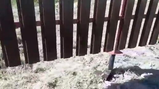 Забор на винтовых сваях из металлического п-образного штакетника с распашными воротами в г. Чехов.