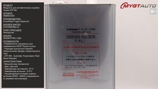 Жидкость для автоматических коробок Toyota ATF WS 0888602305 #ANTON_MYGT