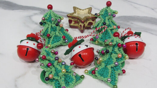 Как связать крючком красивые нарядные новогодние елочки - резинки для волос или игрушки легко и просто. Вяжем вместе.