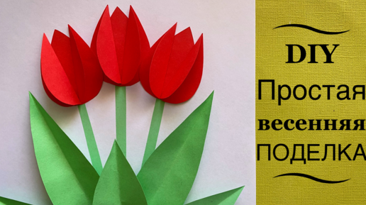 Простая весенняя аппликация из цветной бумаги. Объёмные тюльпаны