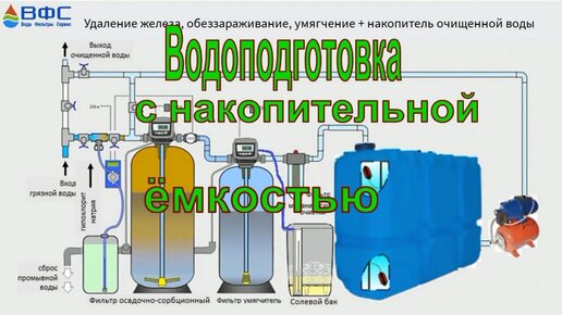 Водоподготовка с Накопительной Ёмкостью чистой воды от Железа, Микробиологии, Жёсткости (умягчение)