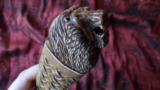 Вырезаем на топорище голову льва и плетёнку.Хорошее дополнение для подарочного топора.