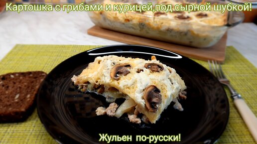 Готовлю картошку с курицей и грибами в соусе под сыром!