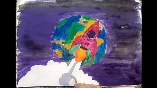 Как нарисовать планету, ракету и космос \\ рисуем карандашом и красками