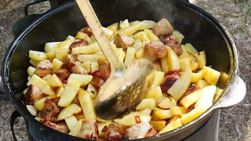 Жареная Картошка с Грибами..НА КОСТРЕ.