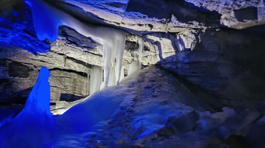 Яркая подземная пещера с гротами, озёрами, сталактитами. Кунгур (Россия)