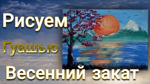 Рисуем весенний закат гуашью