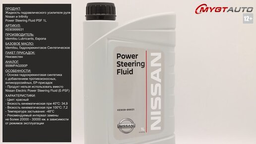 Жидкость гидроусилителя руля Nissan и Infinity Power Steering Fluid KE90999931 #ANTON_MYGT