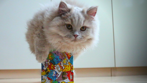 Котенок в коробке или в какую маленькую коробку поместится кошка