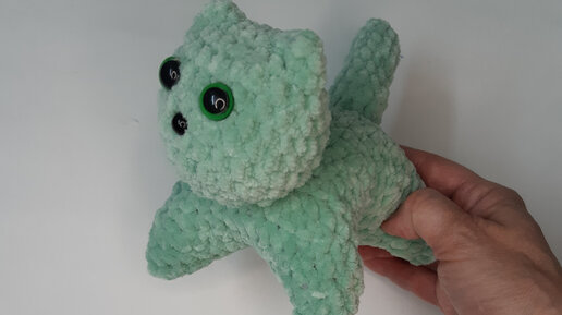 Мини мастер класс как легко связать котика из плюшевой пряжи.