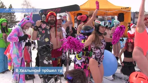Более тысячи человек совершили массовый спуск в купальниках на сноубордах
