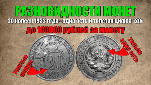 До 100000 рублей за 20 копеек 1932 года - одна ость и толстые цифры