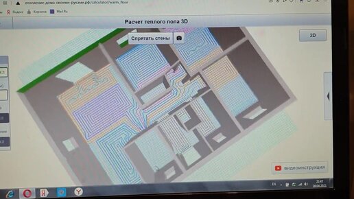 48. Схема раскладки труб тёплого пола в одноэтажном доме 100м2