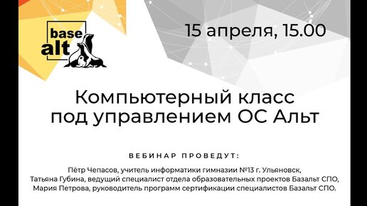 Вебинар: Компьютерный класс под управлением ОС Альт реальный опыт
