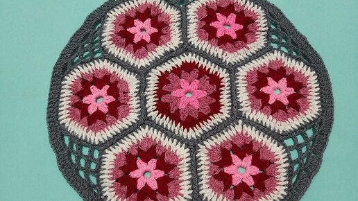 Круглая СИДУШКА крючком. КРАСИВЫЙ шестиугольный МОТИВ.