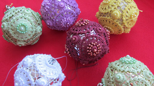 Мои эксклюзивные новогодние шары. Ирландское кружево. Подробный мастер класс можете посмотреть и связать такие же.