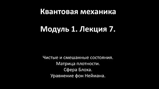 Квантовая механика. Лекция №7