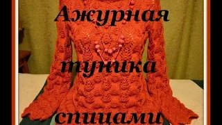 Обзор работы. Ажурная туника спицами. Узор "ромбы" // Mariya VD.